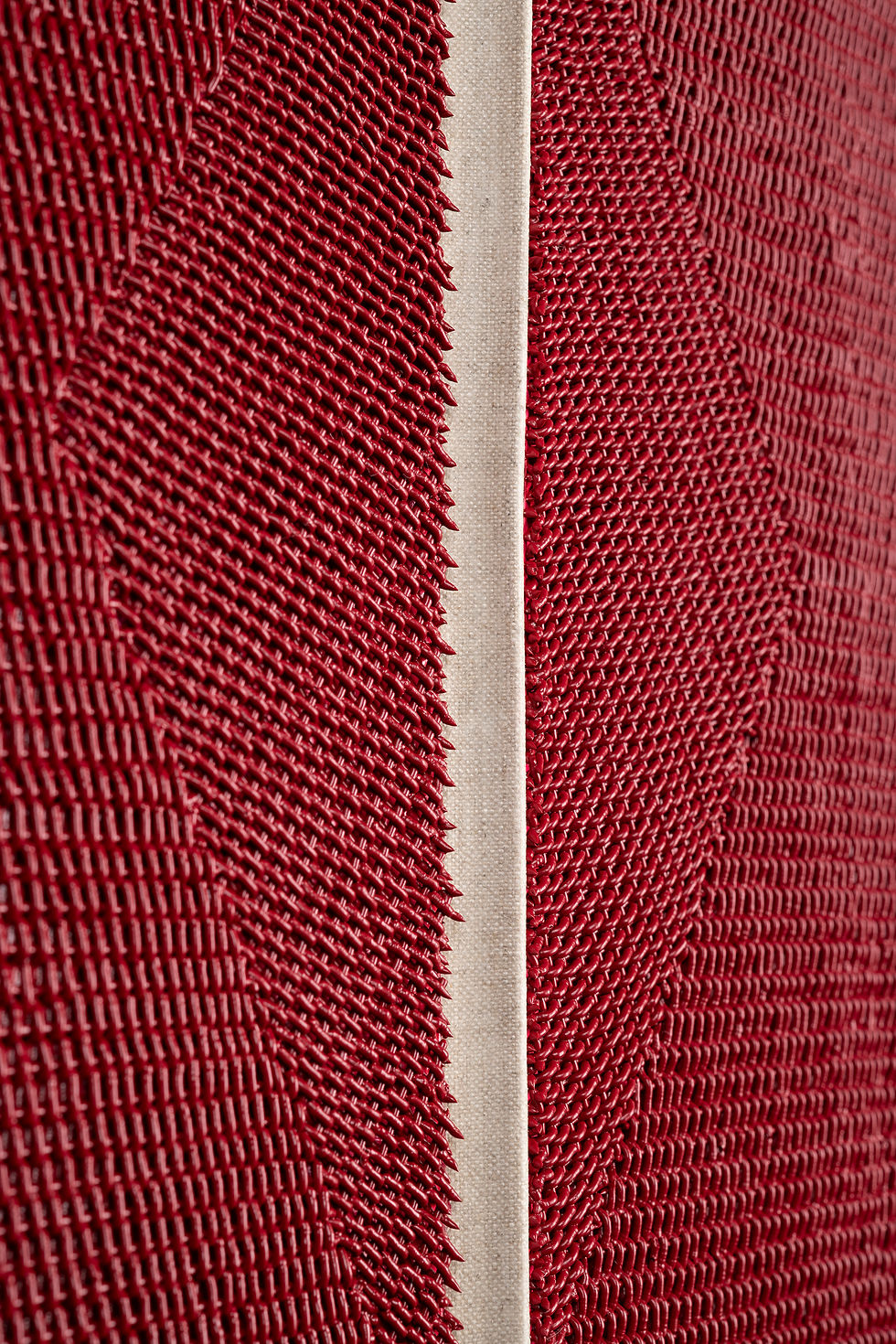 Abstraction and the erotic, as described by Lorde, are coded languages of subversive resistance that communicate energy and meaning through “nonrational knowledge” and material. That resonates with the way I work, thinking through the materials themselves. The titles in these new works (Pierce, Slit, Split, Zip, Scroll) point to the action of the linen within the weaving, potential associations with the body, and historical abstract paintings.